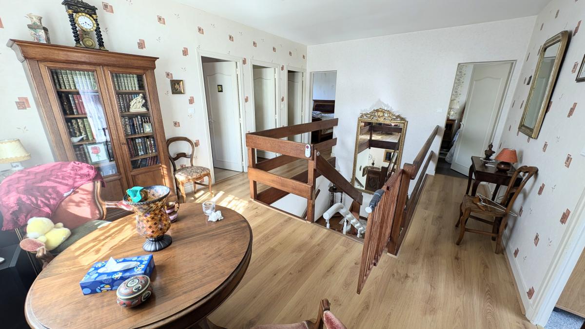 - étage divisé en Mezzanine 14m², 4 Chambres dont 3 avec placards (9, 12.50, 13 & 15m²), Salle d'eau 5.30m² et WC indépendants;