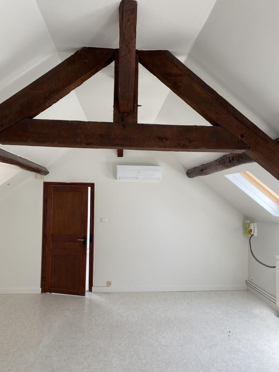 . A l'ETAGE : Un appartement occupé de 32.74m² (loué 350€/m) accessible par un escalier extérieur en pierres, composé de :